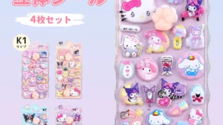 ちいかわ、クロミ、ハローキティ、クレヨンしんちゃんなど、人気キャラクターが大集合した3Dぷっくりシールを紹介。スマホデコや手帳にぴったりの立体ステッカーです